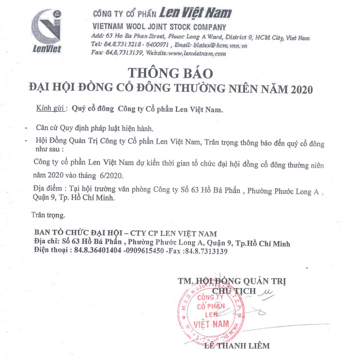 Thông báo mời đại hội năm 2020
